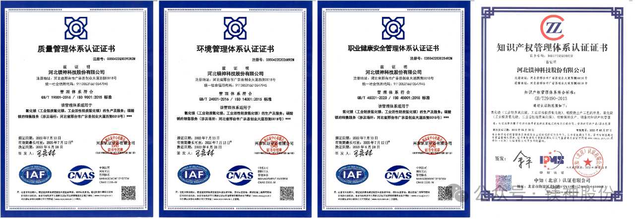 河北鎂神科技股份有限公司作為國(guó)內(nèi)領(lǐng)先的醫(yī)藥級(jí)鎂鹽生產(chǎn)企業(yè),始終秉承“質(zhì)量為本、客戶至上”的經(jīng)營(yíng)理念,致力于為客戶提供高品質(zhì)的醫(yī)藥級(jí)氧化鎂、碳酸鎂、七水硫酸鎂等原料藥。我們的產(chǎn)品嚴(yán)格按照《藥品生產(chǎn)質(zhì)量管理規(guī)范》生產(chǎn),確保每一批產(chǎn)品都符合國(guó)家藥品質(zhì)量標(biāo)準(zhǔn),并已通過多項(xiàng)國(guó)際認(rèn)證,深受國(guó)內(nèi)外客戶的信賴與好評(píng)。