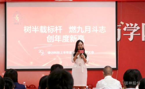 九月金秋,碩果飄香,正是總結(jié)過往、蓄力前行的美好時(shí)節(jié)。2025年9月,河北鎂神科技有限公司2025年上半年度總結(jié)暨表彰大會(huì)在鎂神商學(xué)院盛大召開。全體鎂神人齊聚一堂,以“樹半載標(biāo)桿燃九月斗志創(chuàng)年度新高”為主題,共同回顧上半年的奮斗征程,見證榜樣的榮耀綻放,擘畫下半年的發(fā)展藍(lán)圖。